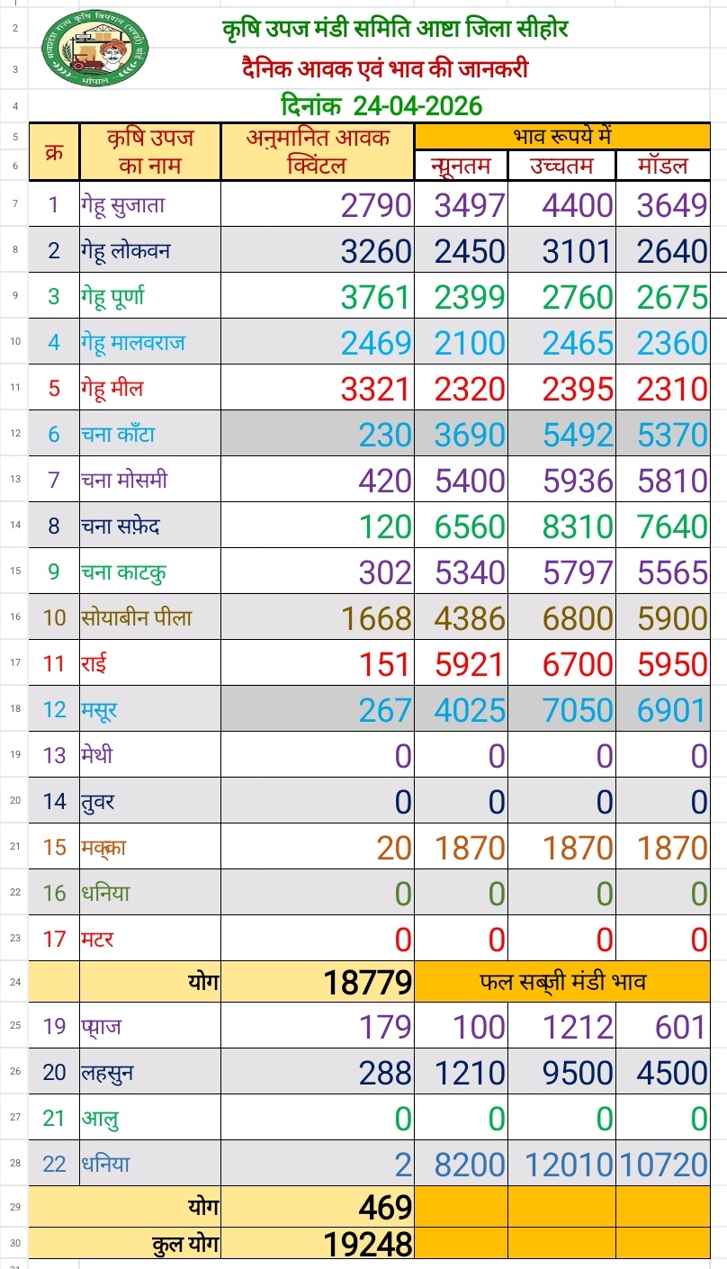 Today Ashta Mandi Bhav | आज का आष्टा मंडी भाव दिनांक : 24 अप्रैल 2026 शुक्रवार