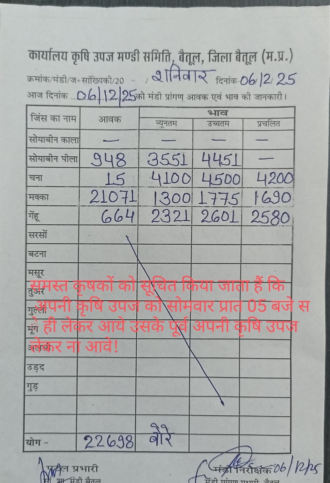 Today Betul Mandi Bhav | आज का बैतूल मंडी भाव दिनांक : 07 दिसम्बर 2025 शनिवार
