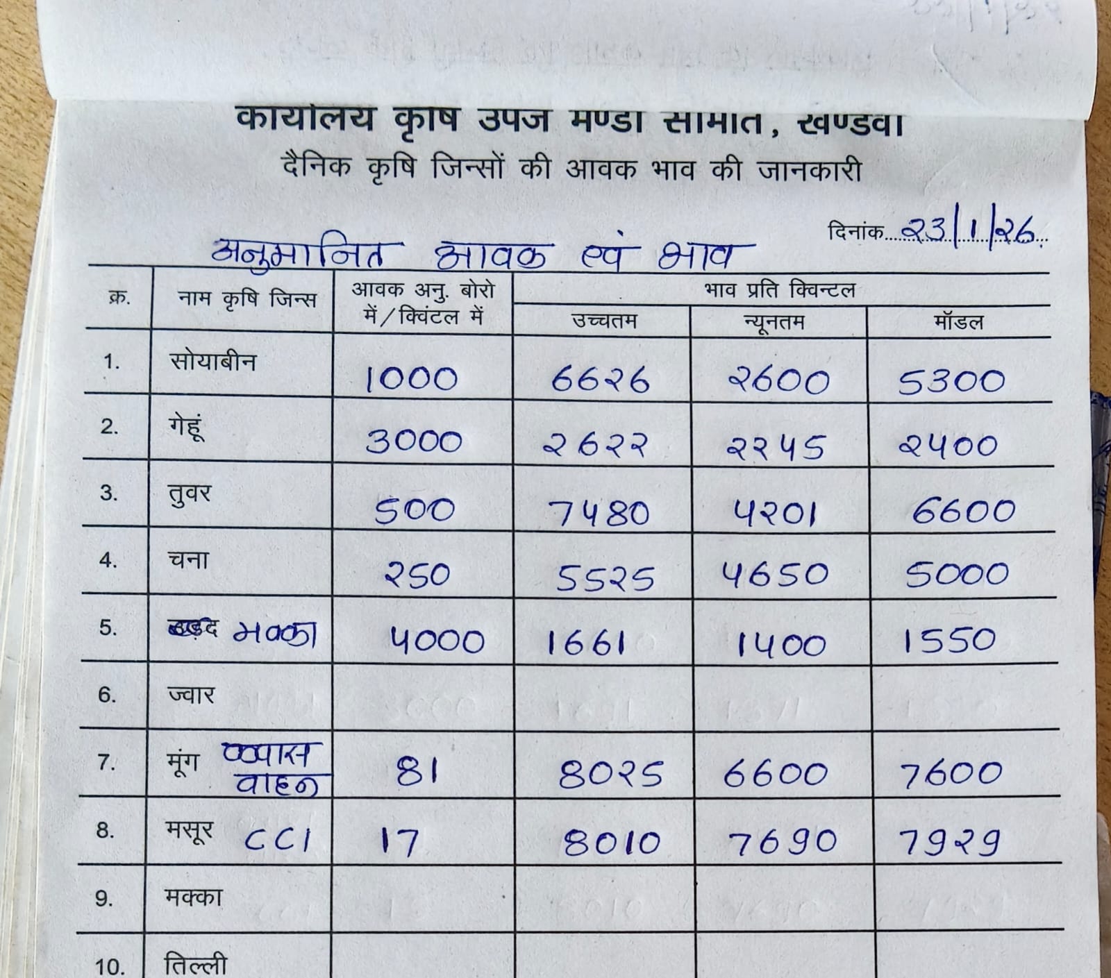 Today Khandwa Mandi Bhav | आज का खंडवा मंडी भाव दिनांक : 23 जनवरी 2026 शुक्रवार