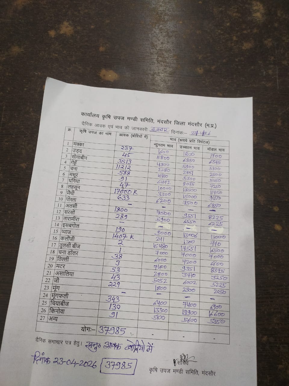 Today Mandsaur Mandi Bhav | आज का मंदसौर मंडी भाव दिनांक : 23 अप्रैल 2026 गुरुवार