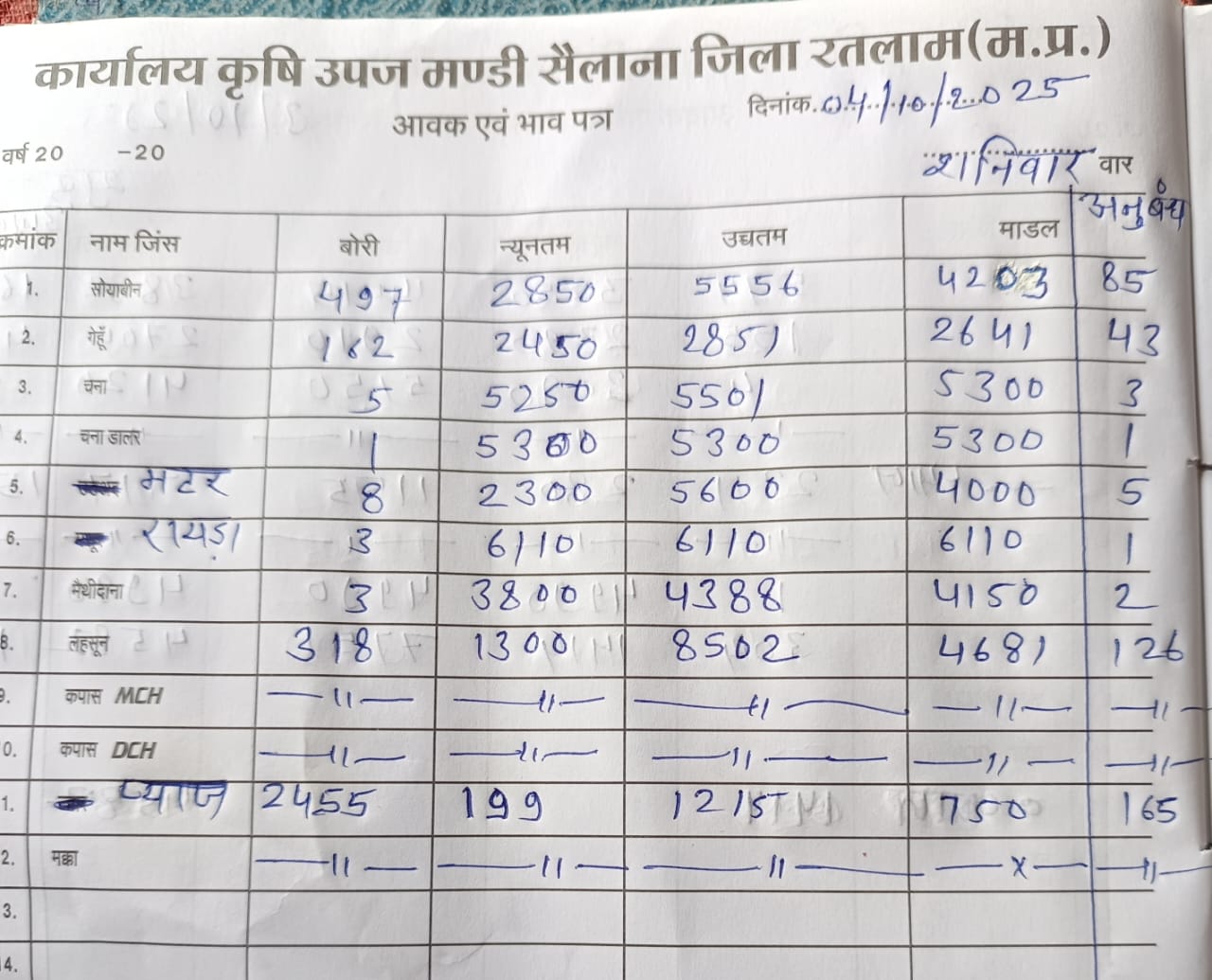 Today Sailana Mandi Bhav | आज का सैलाना मंडी भाव दिनांक : 04 अक्टूबर 2025 शनिवार