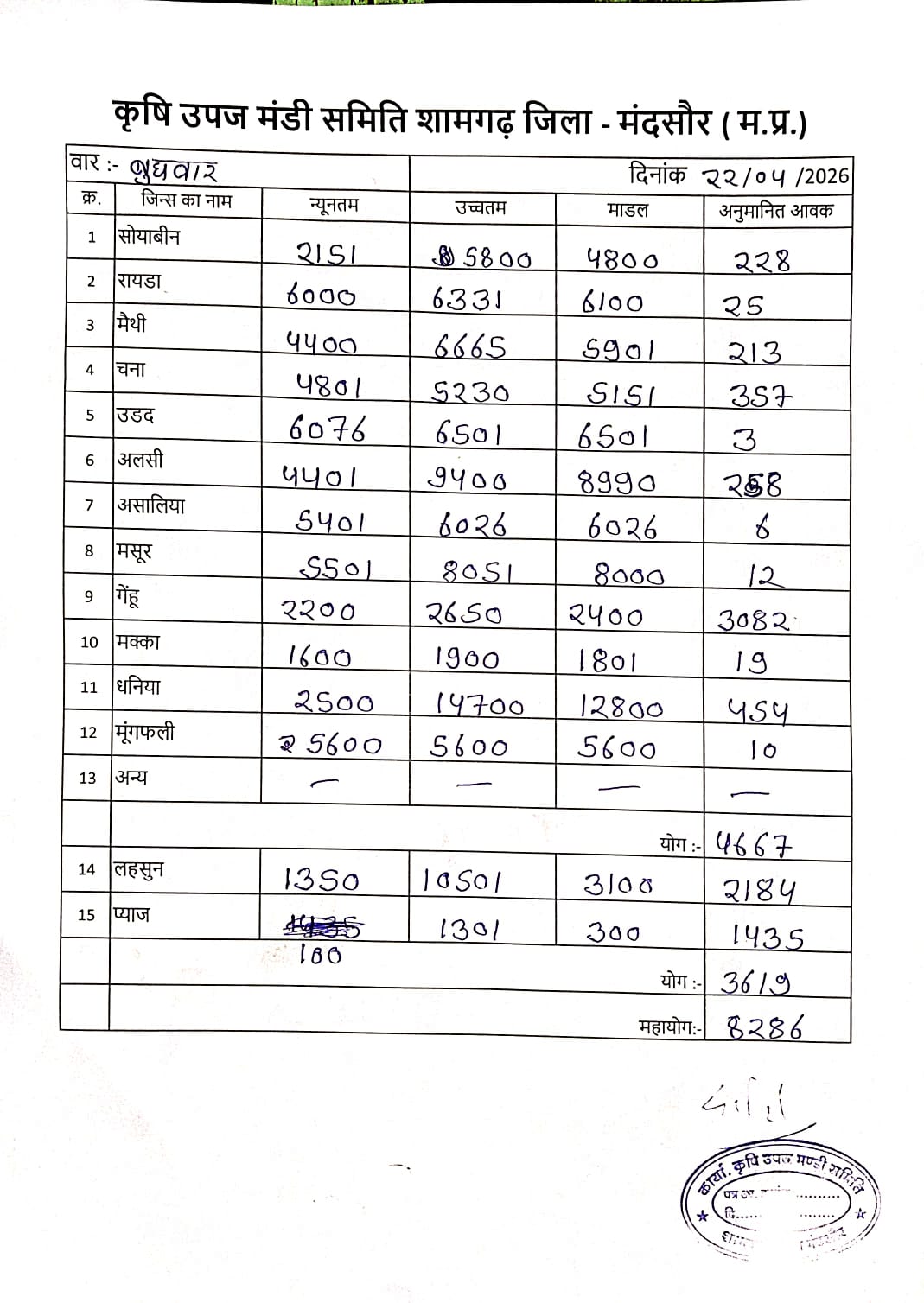 Today Shamgarh Mandi Bhav | आज का शामगढ़ मंडी भाव दिनांक : 23 अप्रैल 2026 गुरुवार